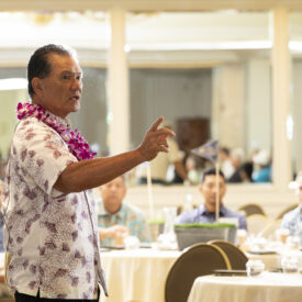 Corbett Kalama, who has held numerous positions in the Hawaii business, discussed the importance of the industry’s Kuleana to care for the land; golf’s most important asset. Corbett is the current President of Friends of Hawaii Charities, the non-profit partner of the Sony Open in Hawaii. He also has held influential leadership roles with First Hawaiian Bank, Castle Foundation, The Weinberg Foundation, and his current role as President and CEO of RESCO, Inc.