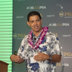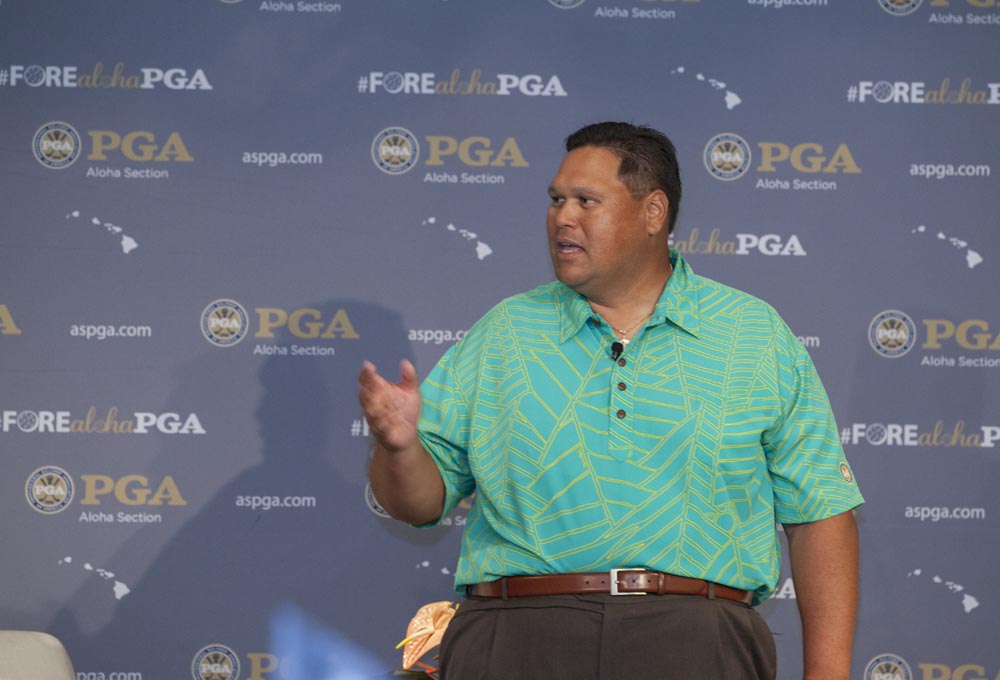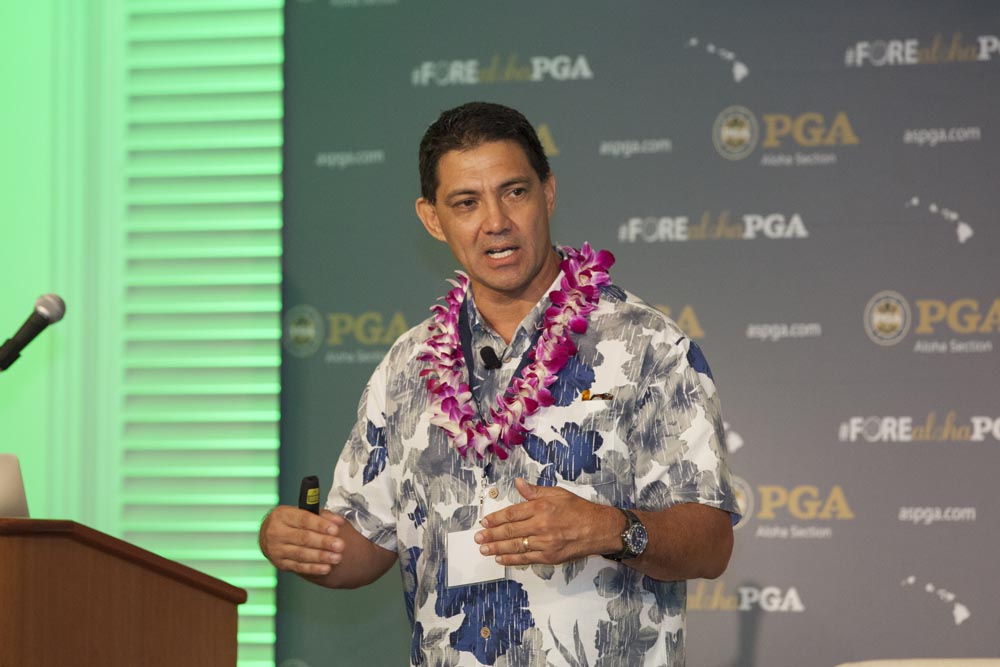 Corbett Kalama, who has held numerous positions in the Hawaii business, discussed the importance of the industry’s Kuleana to care for the land; golf’s most important asset. Corbett is the current President of Friends of Hawaii Charities, the non-profit partner of the Sony Open in Hawaii. He also has held influential leadership roles with First Hawaiian Bank, Castle Foundation, The Weinberg Foundation, and his current role as President and CEO of RESCO, Inc.