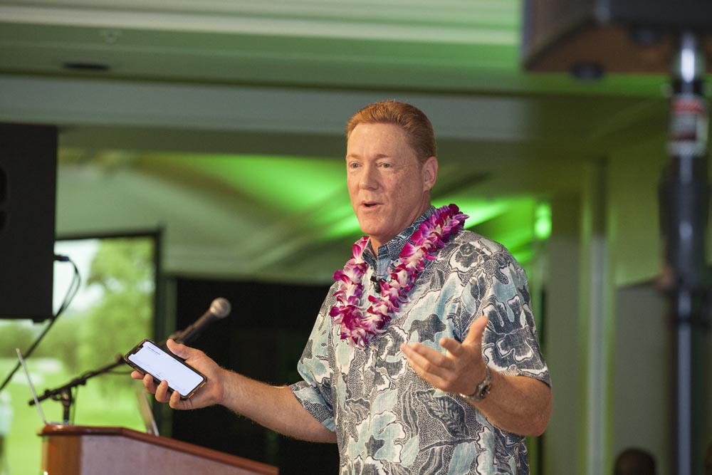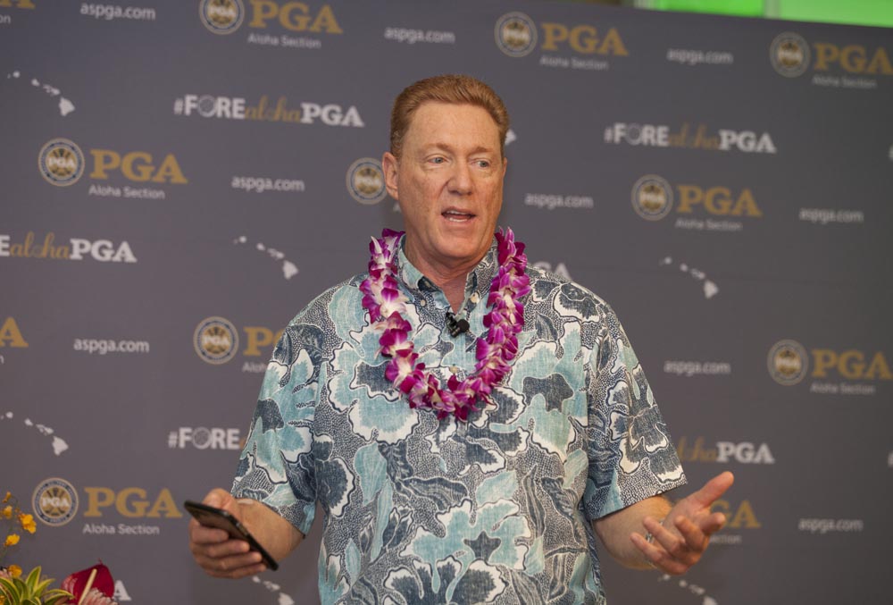 Our keynote speaker with over 27 years on the PGA Tour was Professional Scott Simpson, who in 1987 won the U.S. Open and competed on Tour for many years. Hawaii has always been home for him and his family and he is now the Men’s Head Golf Coach at the University of Hawaii at Manoa. He is also involved with the Hawaii State Junior Golf Association and the First Tee of Hawaii.